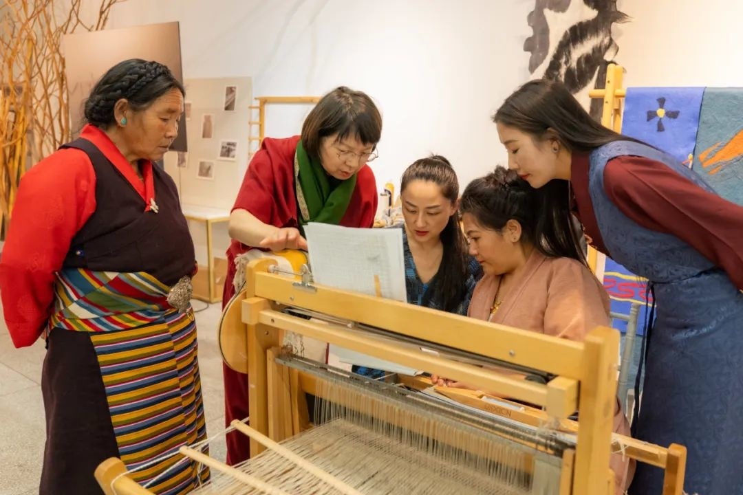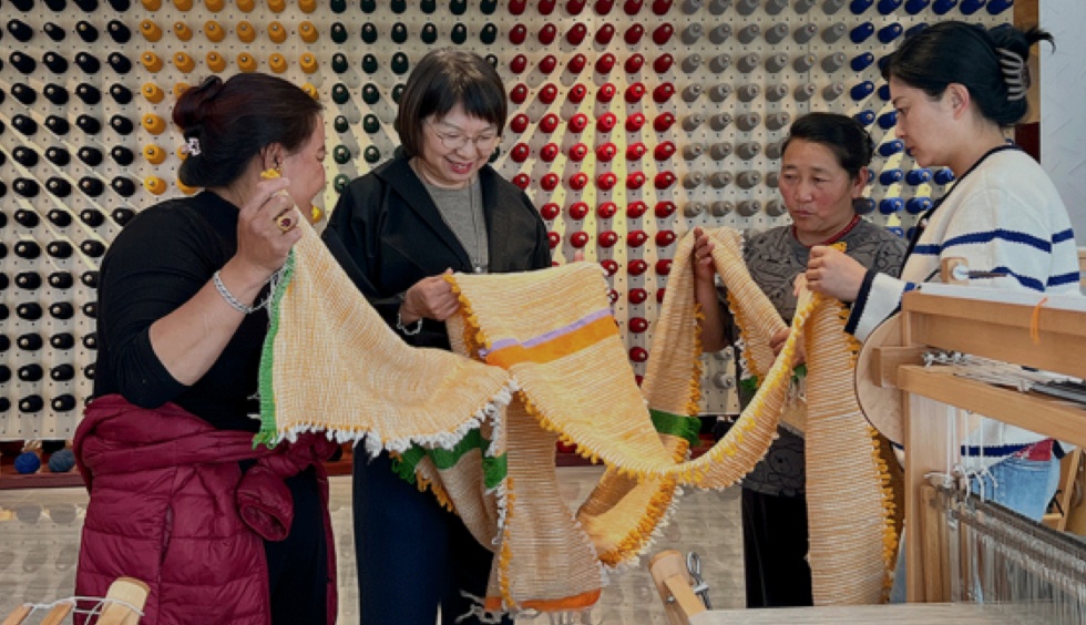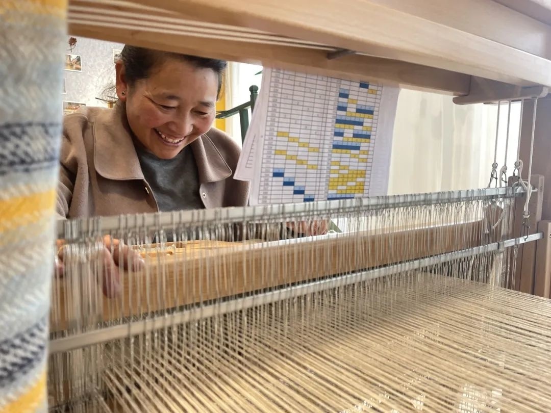 2022年7月,郭秀玲在上海市第十批援藏干部人才联络组的帮助下,她和团队数次深入西藏腹地,与拉萨和日喀则当地的农村合作社、地毯厂沟通交流、相互学习,逐一走访乡村作坊、家庭工作坊,帮她们梳理自己的强项,并解决织机问题。很快,郭秀玲在江孜县成立上海工匠沙涓援藏氆氇工作室,通过产业帮扶让藏族妇女实现了一边在家照顾老人孩子,一边手工劳作获得收入。