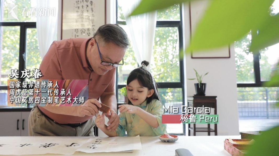 来自南美洲秘鲁的小朋友Mia装扮成萌趣可爱的小小书童,在杨浦4A级景区笔墨宫坊体验缤纷的文旅活动与中华文化的传承,“解锁”海派非遗旅游新体验。“观今宜鉴古,无古不成今”,在这里能够看到最大的如意墨和最长的狼毫笔,更有清代制笔大师周虎臣第十一代传承人吴庆春现场将“有朋自远方来,不亦乐乎”挥毫落纸。一笔一墨一人生,匠心“非遗”在这里拥有全新表达。在上海,看非遗!