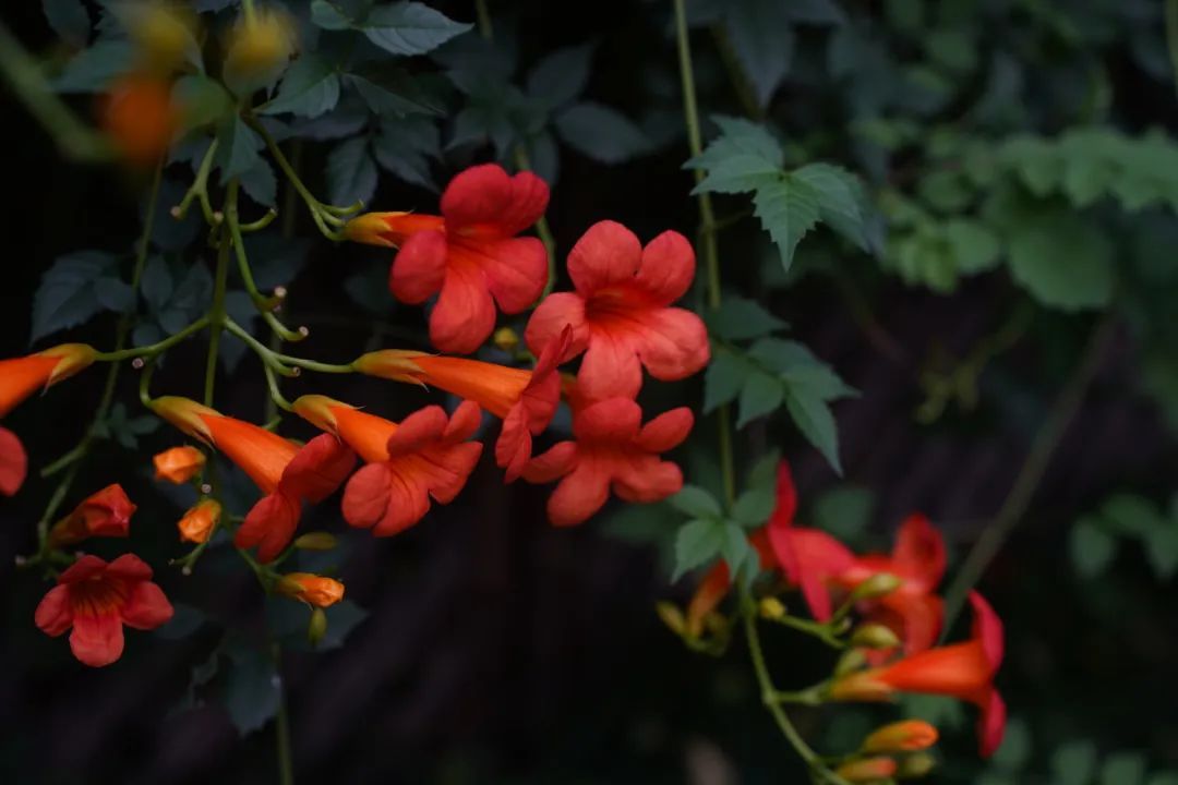 循着古朴雅致的影壁向前,悄悄观赏凌霄花的韵味。凌霄本有妍,染霞怀锦色,青枝柔蔓间婉转出古今意韵,江南园林的水墨丹青里流溢着花开的轻盈。