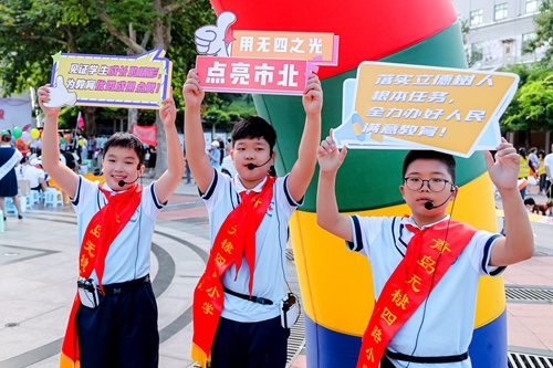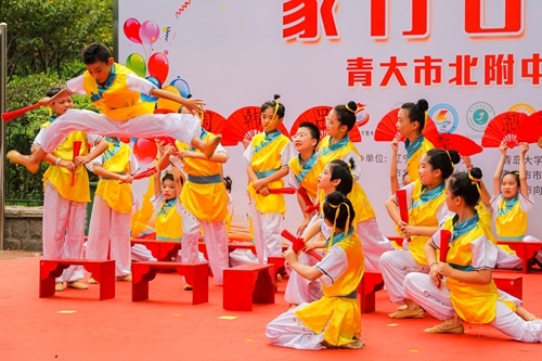 9月15日,青岛大学市北附属中学共同体在辽宁路街道贮水山广场举办教育成果展活动,来自附属中学共同体的青大市北附中、无棣四路小学等中小学、幼儿园11家学校展示了纸艺、书画、软陶、剪纸和文艺节目,让社区居民近距离感受市北教育新风貌新活力。