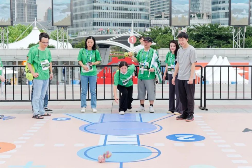 在比赛的4号线路中,东方明珠是继M+黑石、上海中心·混知书店的第三个打卡点。5人组成的各支参赛团队,需来到东方明珠城市广场的比赛场地,根据指示完成丢沙包、套圈等有趣任务,在欢声笑语中解锁下一个打卡点,不少人还以东方明珠为背景拍照留念。参赛团队的组成,既有同事、朋友,也有一家老小。“很好玩,充满了惊喜”!和上海城市规划馆的同事一起组队参赛的宋女士介绍,点位在赛前是保密的,“就像是抽盲盒一样!”三年前曾有过比赛经验的朱女士,此次选择同家人一起参赛:“累,但是开心!好久没有这样玩了!”