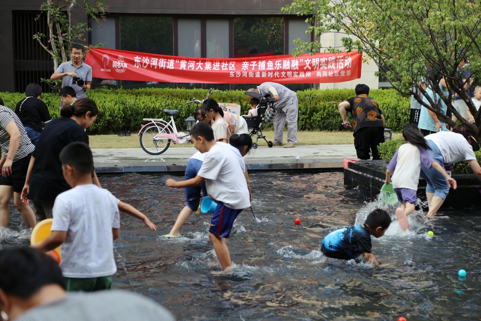 9月16日下午,滕州市东沙河街道新时代文明实践所联合尚同社区、联迪集团、绿城物业等单位部门,在辖区开展“黄河大集进社区,亲子捕鱼乐融融”文明实践活动。