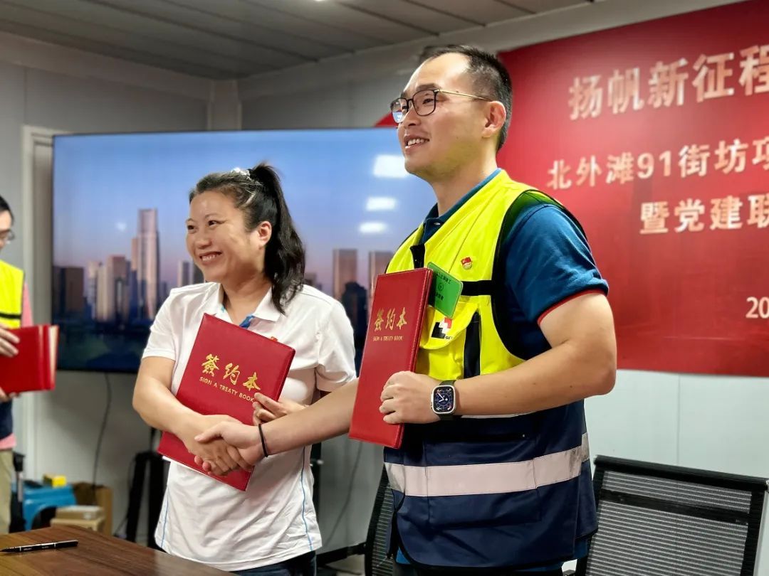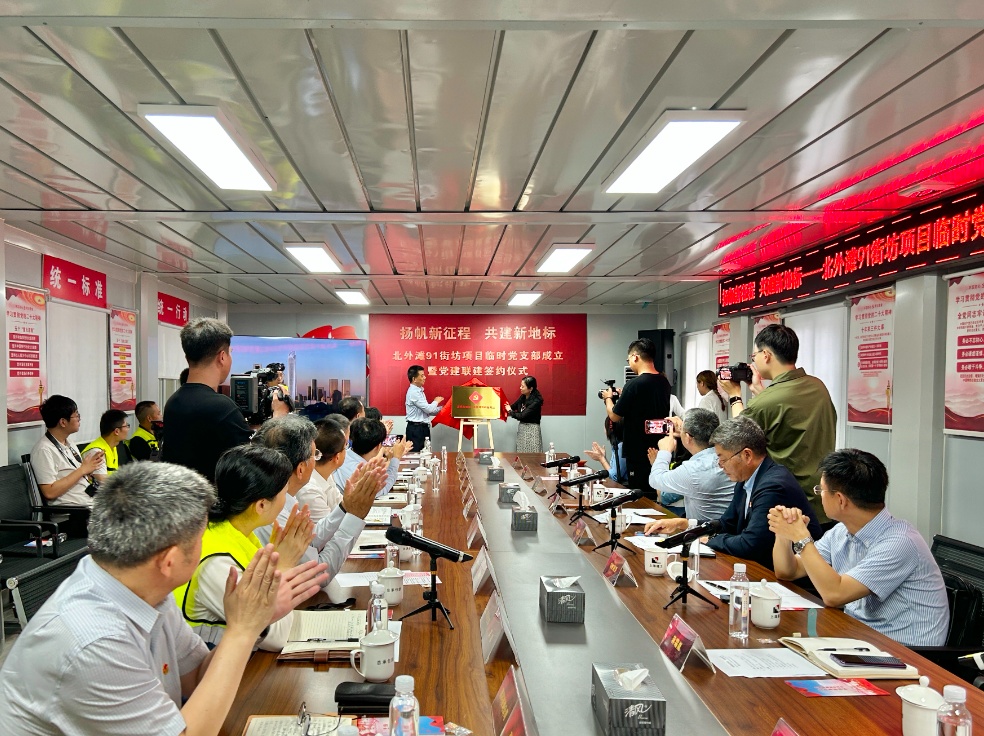 9月15日下午,北外滩91街坊项目临时党支部成立暨党建联建签约仪式,在该项目工地举行。