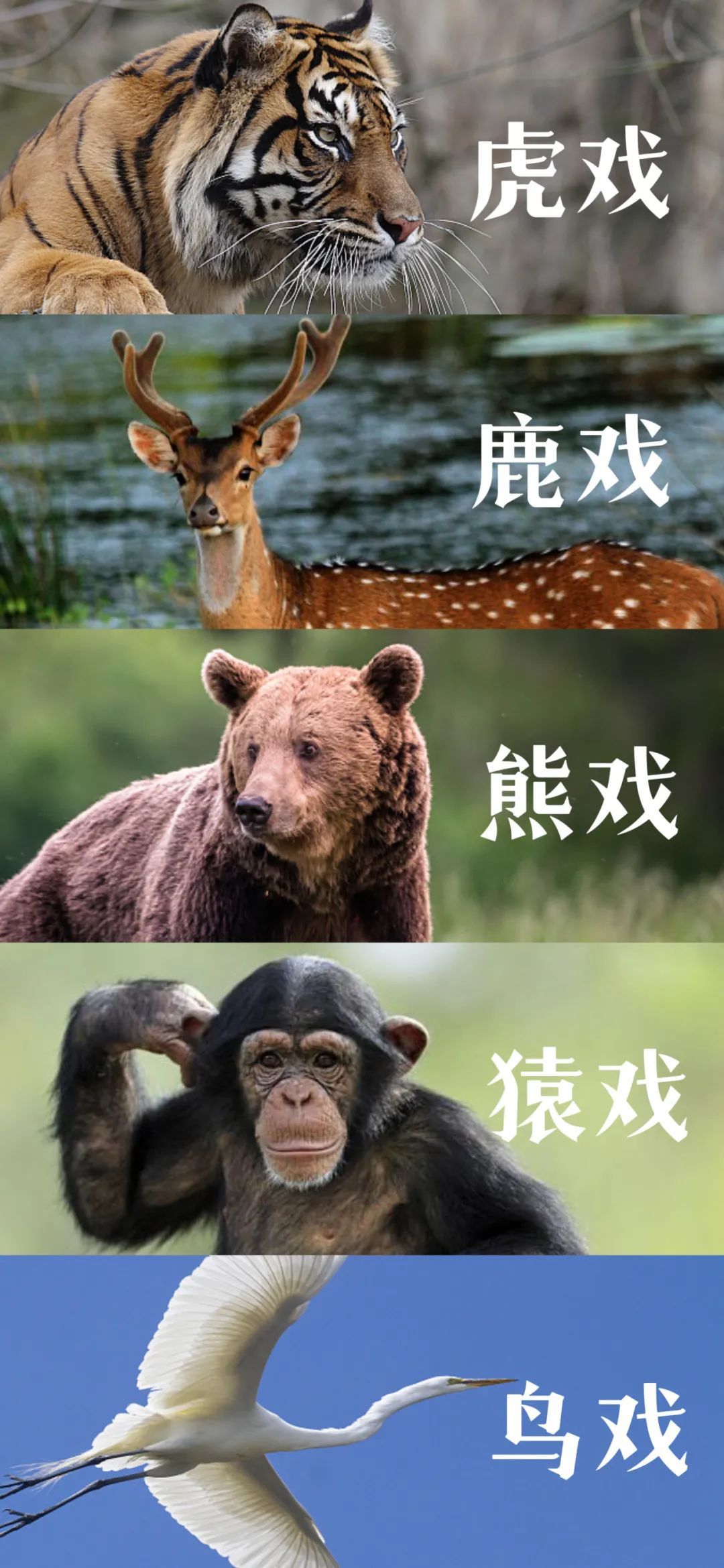 虎、鹿、熊、猿、鸟