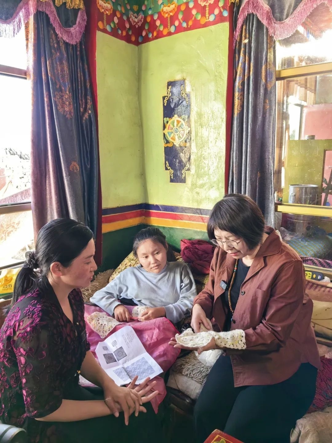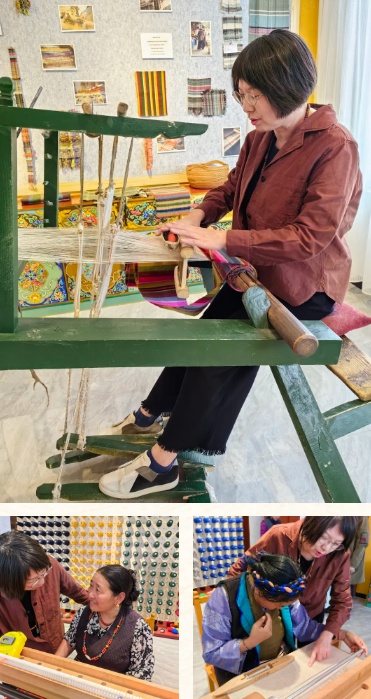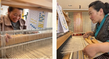 ▲在江孜县索盖村上海工匠沙涓援藏氆氇工作室,郭秀玲指导当地手工女匠人编织