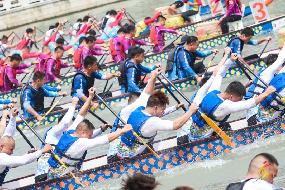 “我们就是冲着200米和500米的冠军来的!”广东中山汇泉龙舟队带队教练王翔宇说。据了解,广东中山汇泉龙舟队组建于2021年,有队员24人,他们来自各行各业。自组队以来,汇泉龙舟队一直参加各类赛事,并屡次斩获前三。“我们长期进行职业化训练,全年投入的训练时间长达10个月,针对这次比赛,我们特意集训了一个月。”王翔宇说,泗泾塘河道和他们训练的江河差不多,队员们体验很好。
