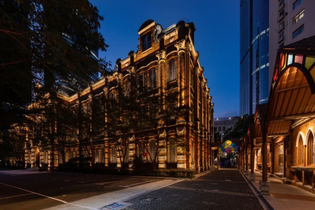 “百年风雨如初见,古今传承崇思楼”,崇思楼作为“徐家汇源”4A文化景区的第一站,在设计时都经过了精心的设计与巧思,利用灯光上的分布,从入口的围墙到入口广场两侧新旧建筑的色温差异,以及走到最佳视角的视觉焦点,通过灯光的完美烘托,展现楼体的纵深感与立体感。