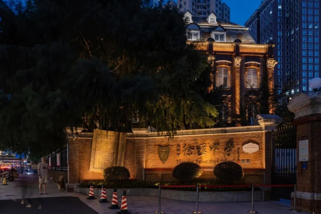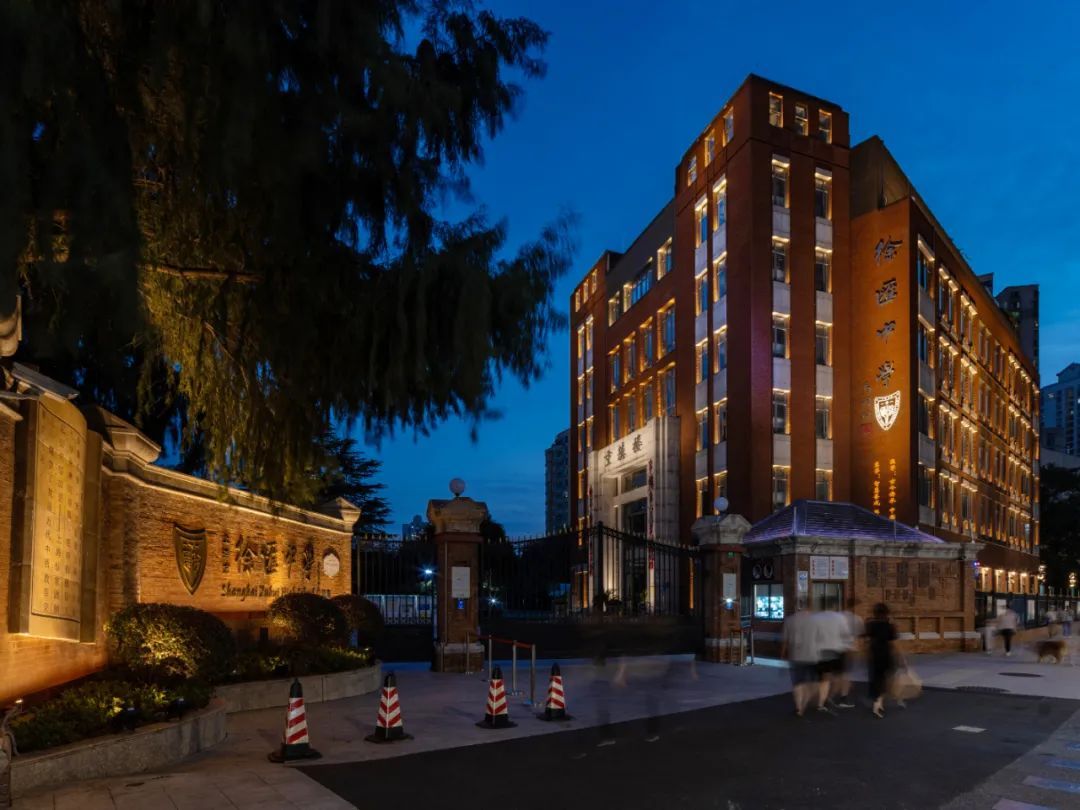 徐汇中学作为“西学东渐第一校”,是上海市文物保护单位,也是徐家汇中央活动区中“海派文化之光”的百年文化建筑群之一。 近期,这座百年老校已完成最后灯光调试,以新姿态全新亮相。本次照明设计以“催化时光”为理念,分别对屋顶、立柱、窗框、墙体构思设计,再从远处进行投影,将徐汇中学的校徽以及校训通过光的形式展现在建筑上,打造可编辑的历保建筑光影界面。