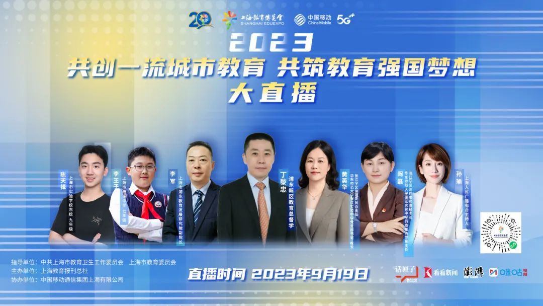 今晚19:00,2023第二十届上海教博会教育大直播正式开启啦! 今年的大直播,邀请上海市教委负责人、上海十六个区域教育掌门人、教师、学生等嘉宾共同走进直播间,讲述他们眼中的一流城市教育、共筑强国梦想的故事……