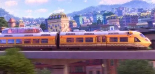 相对于火车,观光列车会小得多,列车总共四节车厢,车头采用流线型设计,外部可以防风沙与冰雪。朱迪乘坐的那节车厢,更有一个 360 度全景圆顶天窗,将动物城的风景尽收眼底。