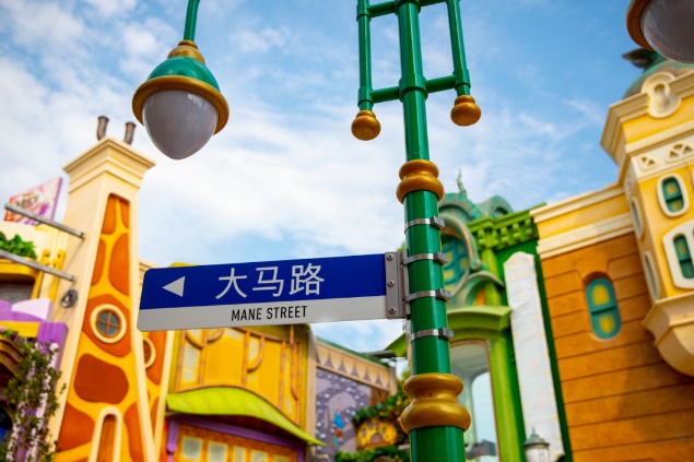 这是“疯狂动物城” 的主干道,其命名既和中文里的“马路”一致,又将“马”这一动物城的居民十分巧妙地融入其中。而其英文名同样巧妙,“Mane Street”中“mane”的英文读音和主街英文名“Main Street”中的“main”类似,而“mane”的意思是马的鬃毛,和中文名“马路”交相辉映。