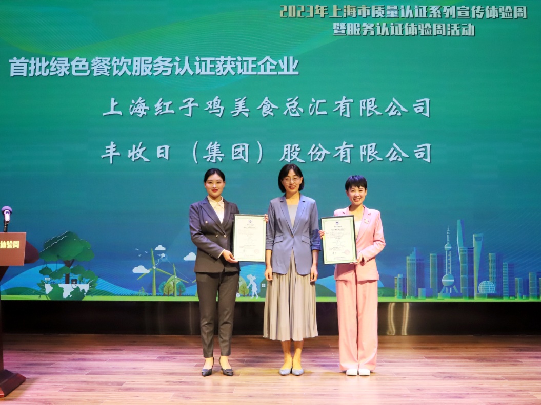 9月19日,市市场监管局举办2023年上海市质量认证系列宣传体验周启动仪式,并开展了“质量认证进校园”“绿色餐饮服务体验”等活动。启动仪式上,发布了《有机消费白皮书2023》;签署“绿色倡议宣言”;向学生代表赠送质量认证系列科普图书;上海红子鸡美食总汇有限公司(红子鸡凤凰楼)、丰收日(集团)股份有限公司(丰收日豫园店、丰和日丽蟠龙天地店)2家本土中式餐饮企业获颁全市首批绿色餐饮服务认证证书。