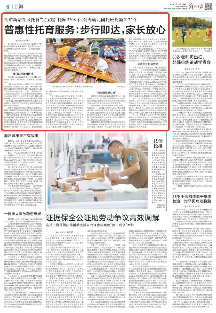 解放日报头条刊发报道《普惠性托育服务:步行即达,家长放心》