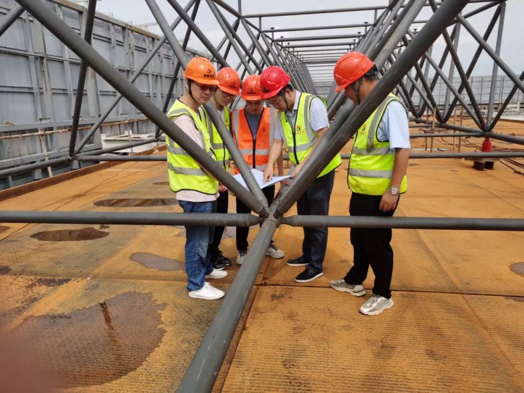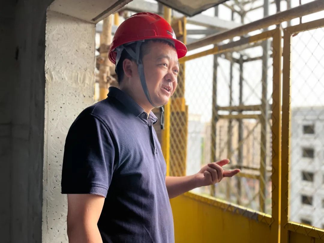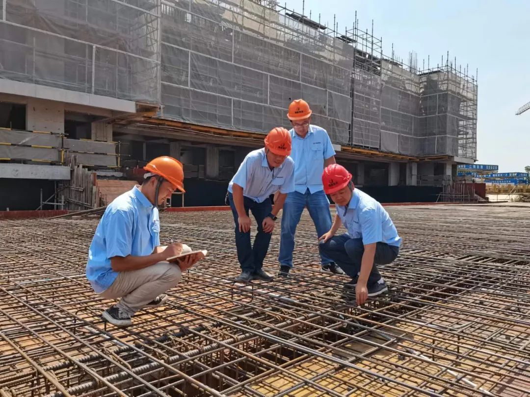 两个小时的现场查看,大大小小的问题都没逃过王军的“火眼金睛”。指出问题,拿出解决方案,强调完成时间节点。检查尾声时,大家的谈话渐渐变得轻松起来。“进度是可以的,最晚开工,但是‘一结构’已经基本完成了。”王军还是忍不住夸了夸现场管理人员。