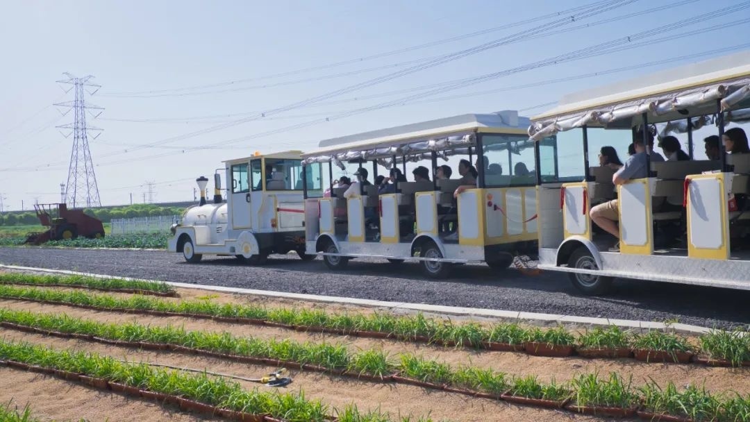 进出园区乘坐免费小火车。