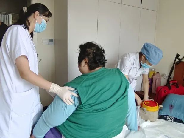 原来,在徐林云医生所管辖区域内新入驻了一位老人王阿姨,患糖尿病二十多年,且伴有多项并发症,需要定期前往医院抽血检验,近期因手臂骨折刚做过手术,她因疾病不能下床,平时需家人照顾护理,她和家属万分焦急,于是向金汇镇社区卫生服务中心家庭医生寻求帮助。