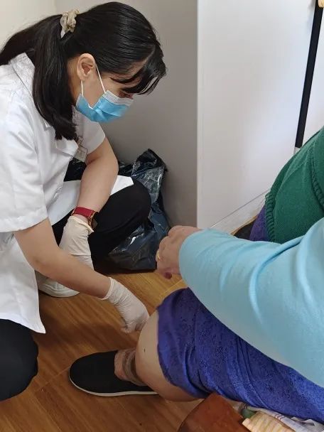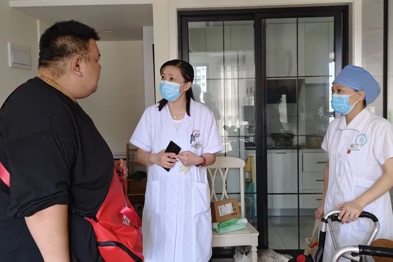 徐林云医生又观察到王阿姨的双脚皮肤呈暗灰色,向阿姨儿子询问情况,仔细查阅王阿姨的病历后,再三强调了从日常护理、用药和饮食等方面需要注意的事项。同时,家庭医生会保持电话畅通,随时跟进阿姨的病情,定期上门服务。阿姨悬着的心终于放了下来,她的儿子感激致谢:“谢谢你们!解决了我们的大难题,让我们很安心,谢谢你们!”