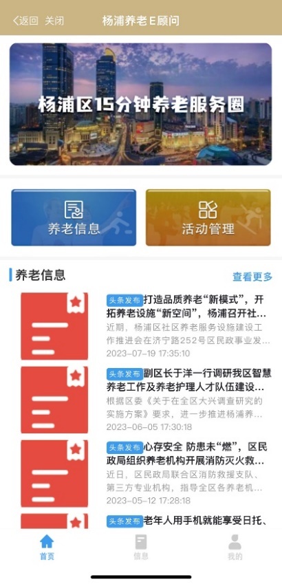 为了让“银发族”不出家门即可享受多样的服务,日前,杨浦区首个一站式为老服务平台——“杨浦养老E顾问”在“随申办”APP杨浦区旗舰店上线,贴心打造杨浦区15分钟养老服务圈。 杨浦区民政局与区“一网通办”专班深度合作,利用杨浦区综合为老服务平台“幸福云”项目,通过手机端提供养老政策、养老设施、养老服务、养老活动的便捷查询。老年人也可以通过“随申办”在线申请90岁以上“爱心奶”、困难老人助餐补贴等服务。 养老政策“一目了然” 老年人通过注册,输入相关的个人基本信息,“e顾问”就能根据老人的服务需求,为老人精准推送相应的养老政策和服务供给。进入“杨浦养老E顾问”界面,点击下方“信息”模块即可查看,实现“让政策找到人,让政策匹配到人。 养老活动“一点可见” 线上汇聚12个街道各类老年活动信息,聚焦老年人跨越数字鸿沟培训、老年健康、老年普法等相关内容,进入“杨浦养老E顾问”的“活动管理”界面即可查看动态,按需报名。 “杨浦养老E顾问”入驻手机移动端,实现养老政策一目了然、养老设施一网覆盖、养老服务一站获取、养老活动一点可见、养老需求一键申请,成为杨浦老年人身边的“万事通”“大管家”,在服务需求和服务供给之间架起一座科技之桥。