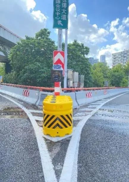 除此之外,本次设施升级还涉及将原有的红白色防撞桶更换为符合新标准的黄黑色防撞桶,并采用耐碰撞、碾压的红白反光立柱。这些改进不仅使防撞桶和反光立柱更加坚固耐用,延长了使用寿命,提升了经济性。