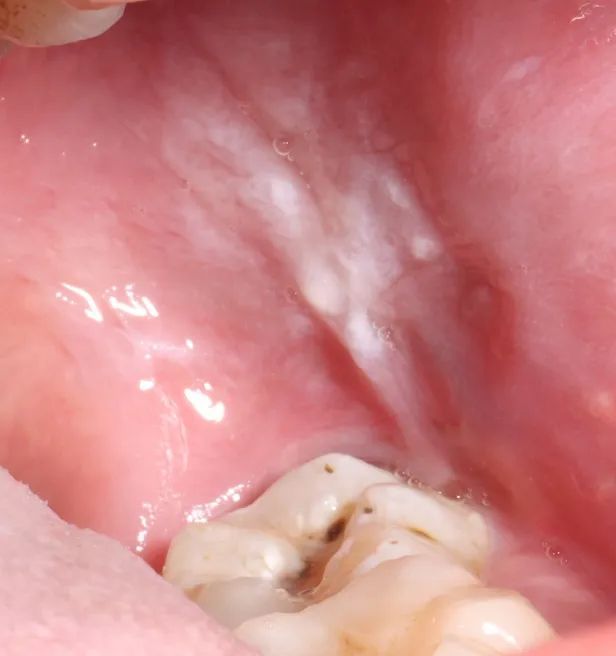 如果口腔黏膜长期受到不良刺激或有烟酒嗜好,容易发生口腔白斑甚至口腔癌。因此应早期预防,戒除烟酒嗜好,不嚼槟榔。