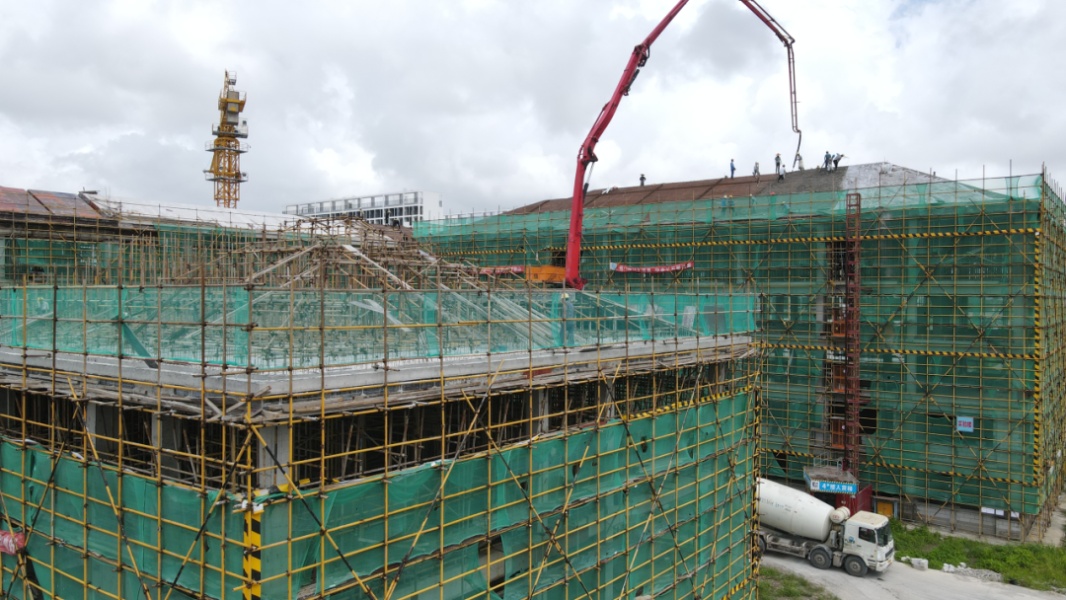前不久,位于航头基地01-04地块的新建公办高中项目的实验楼、教学楼、办公楼陆续封顶,标志着项目建设全面转入结构砌筑和装饰装修阶段。