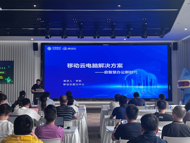 现场,中国移动云能力中心的专家从技术、价格、服务、安全等方面,为企业答疑解惑,详细介绍了“云电脑”解决方案的优势。