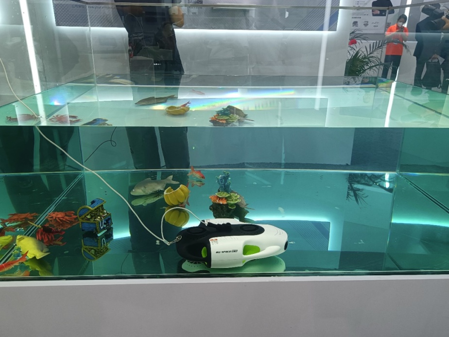 这次,约肯机器人(上海)有限公司将水下世界搬到了工博会现场,形象展示了全球首款变焦拍摄水下无人机的应用场景。