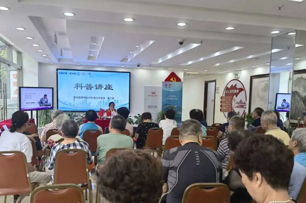 现场,来自新华医院神经内科的副主任医师楼之茵为居民群众带来一场科普讲座。一旁的义诊咨询也吸引了不少居民驻足。