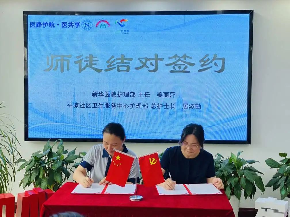 为进一步推进优质医疗资源扩容和下沉,充分发挥三级医院资深护理管理者的传、帮、带作用,新华医院护理部与平凉社区卫生中心护理部还举行了师徒结对签约。