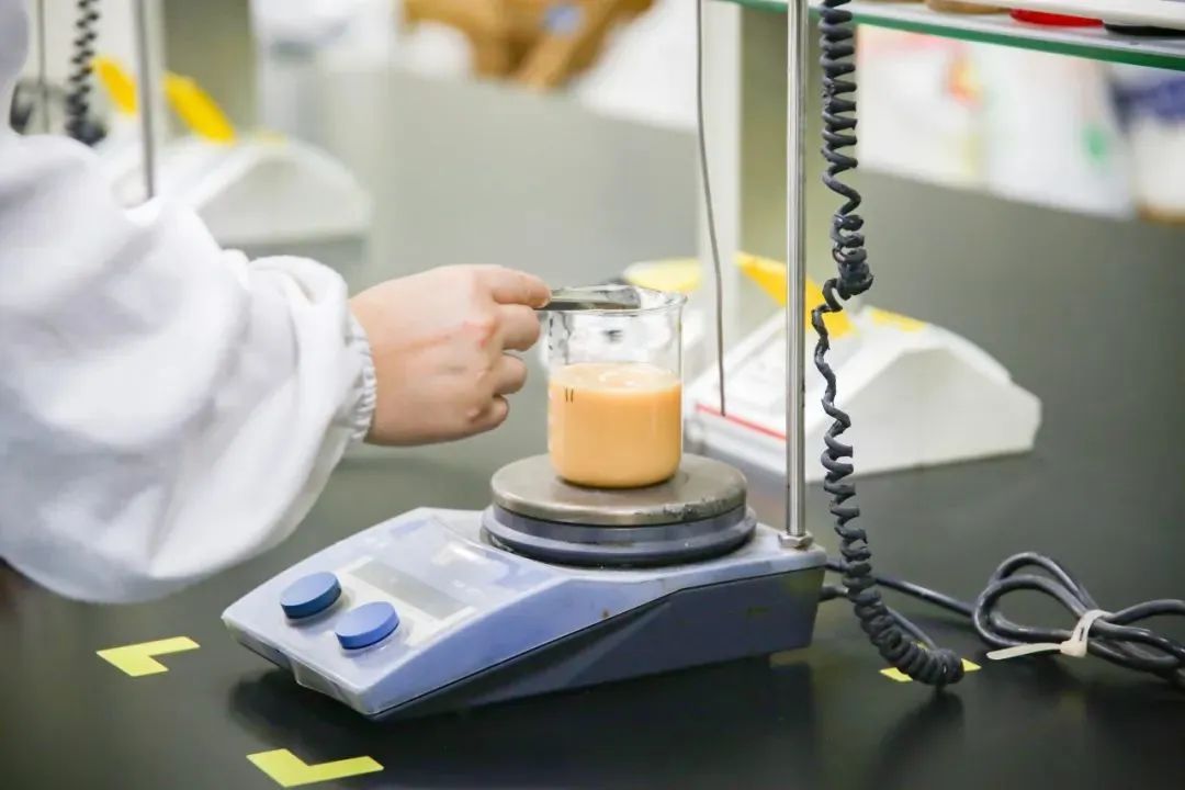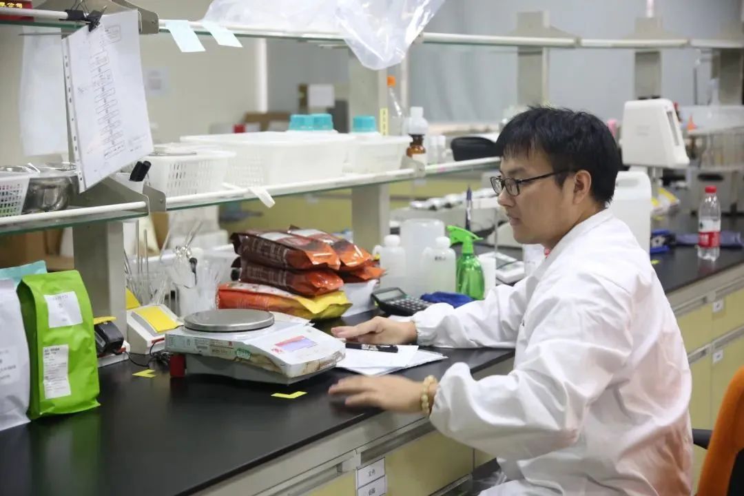 包装好的咖啡还要经过产品检验,三楼是品皇咖啡的研发和检验实验室。这里的瓶瓶罐罐整齐排列,研发人员正忙碌地检验着每一批产品。从原材料到生产过程,再到最终的产品质量,每一步都需要严格把关。