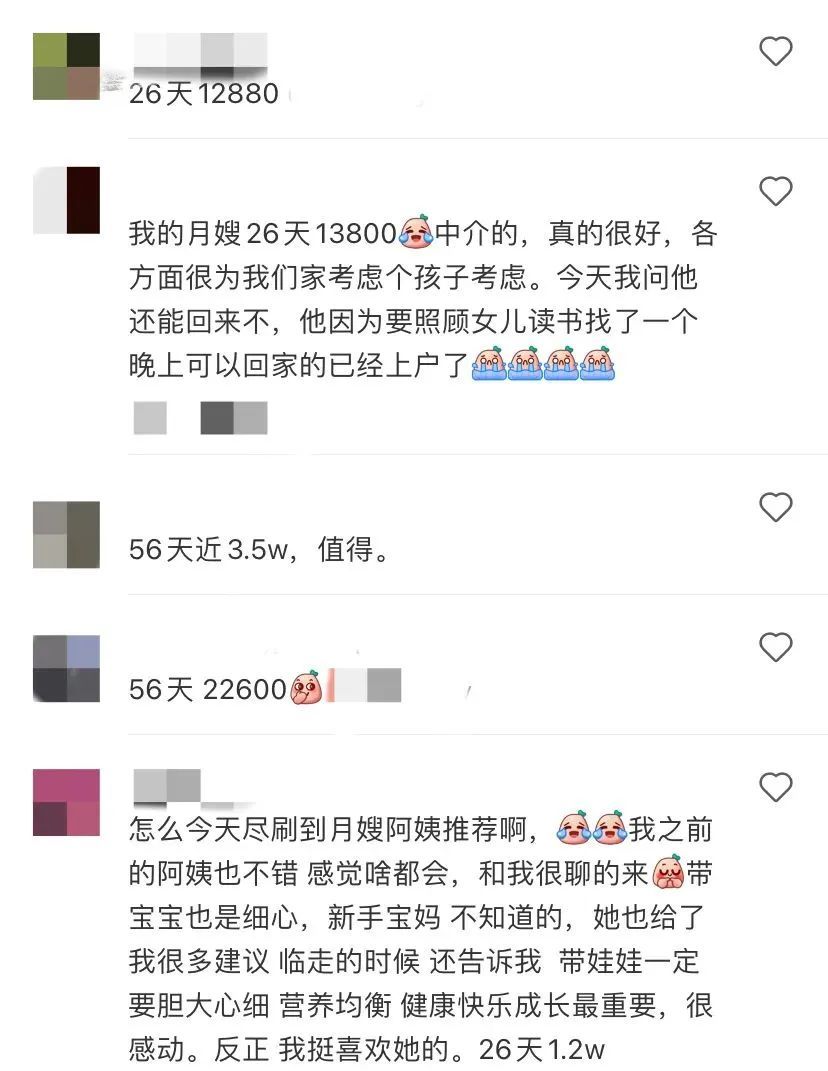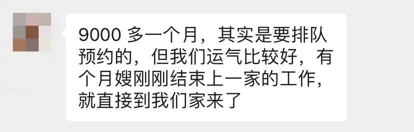 不过即便高薪,想找一个靠谱的月嫂还是可遇不可求。“原以为打几个电话就能轻松敲定,没想到这么难。”去年,距离预产期还有5个月,高丽就将找月嫂一事提上日程。结果询问了十几位亲友,他们推荐的月嫂档期都满了。无奈之下,高丽将目光投向家政服务公司,但公司推荐的月嫂要么价格过高,要么没有眼缘。“好在生产期间,我在医院遇到了一个1990年的小护工,别看她年纪不大,但育儿经验挺丰富,性格也不错,后来我出院就直接把她带回了家。”高丽说。