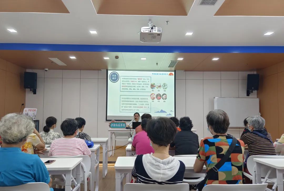 对于社区居民,特别是老年群体关心的一系列健康养生问题,来自岳阳街道社区卫生服务中心的医师,从中医养生的角度详细分析了时令更迭期间的基础养生常识。她叮嘱大家秋燥时节应适当运动,辅以饮食调养,在健康的生活方式中慢慢改善身体素质。对于现场居民咨询的问题,她也一一解答并提出了建议。