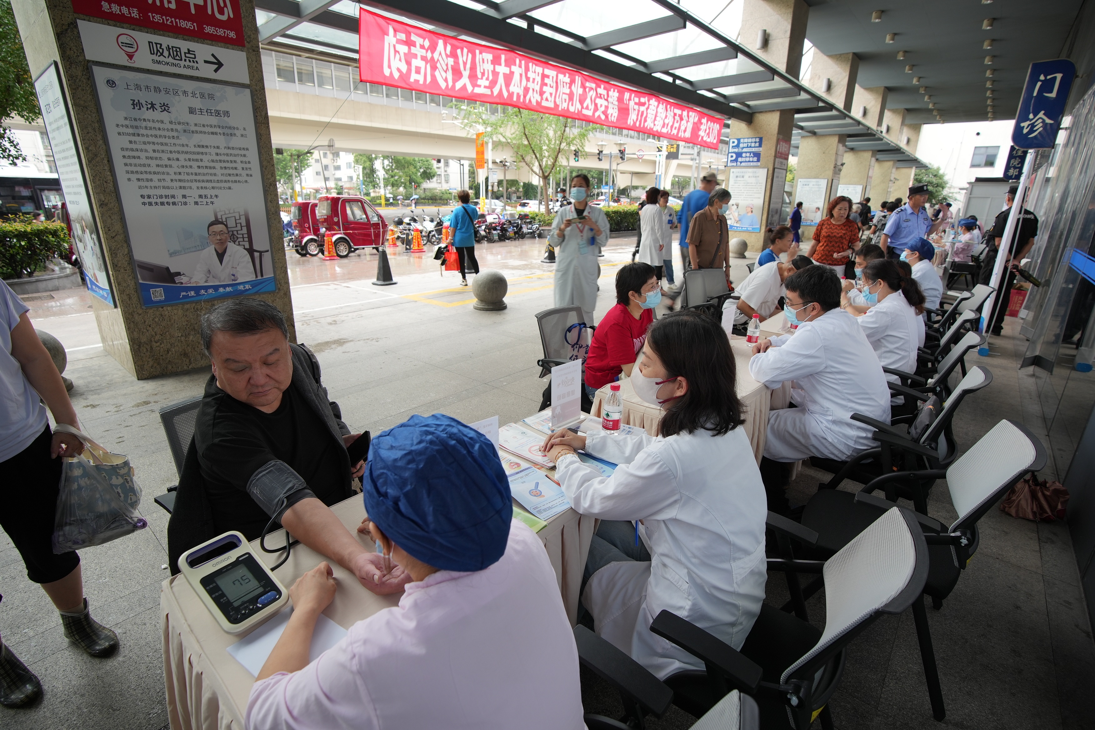为更好服务周边居民,满足居民日益增长的健康需求,9月21日,静安北部医联体牵头单位静安区市北医院,联合来自上海市第三康复医院、彭浦新村街道社区卫生服务中心、临汾路街道社区卫生服务中心、彭浦镇社区卫生服务中心、彭浦镇第二社区卫生服务中心、上海盛德养老院等7家静安北部医联体成员单位的12个科室,共同举办“服务百姓健康行动”大型义诊活动。