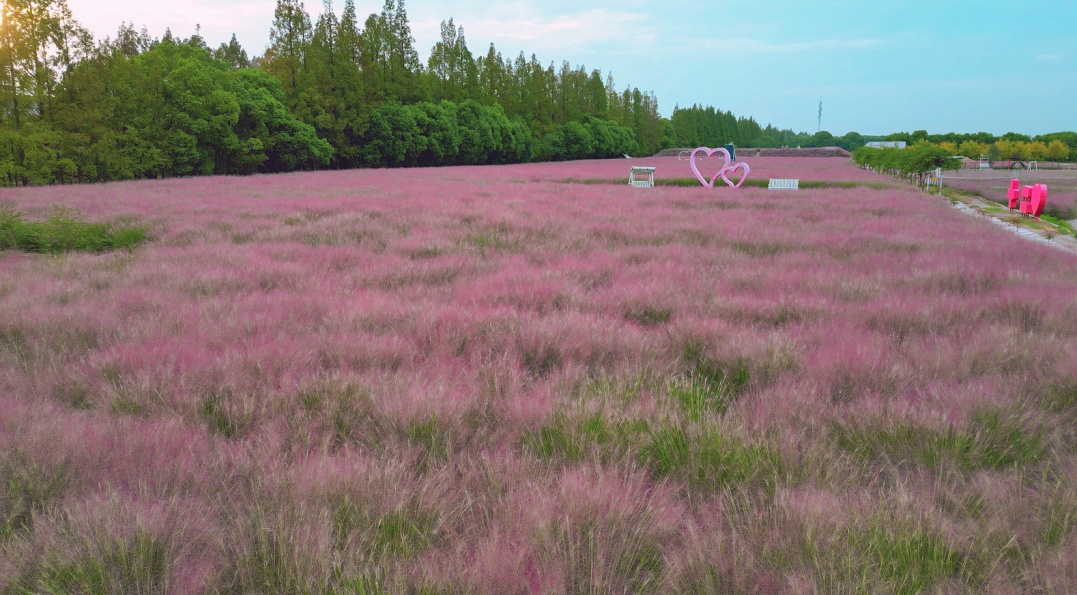 嘉北郊野公园相关工作人员介绍,为了提升观赏效果,今年花海拾光区新种植了约20亩的粉黛乱子草。“现在总共有100亩,相当于10个足球场的面积。而且我们也有意调整了粉黛的花期,今年的最佳观赏期主要集中在国庆假期。”