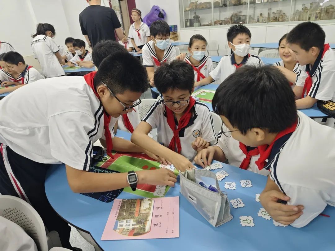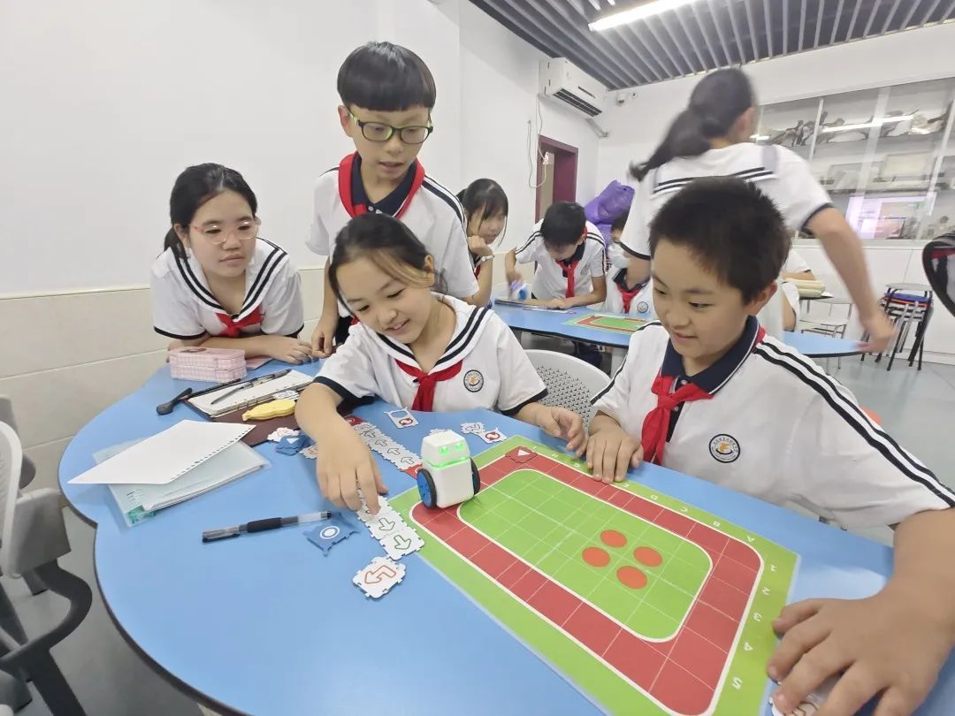 本次活动,上海人工智能研究院少儿分院的顾问张李老师把同学们分成了9个小组,每组同学需要合作完成KUBO无屏编程实践,让小机器人顺利抵达终点。