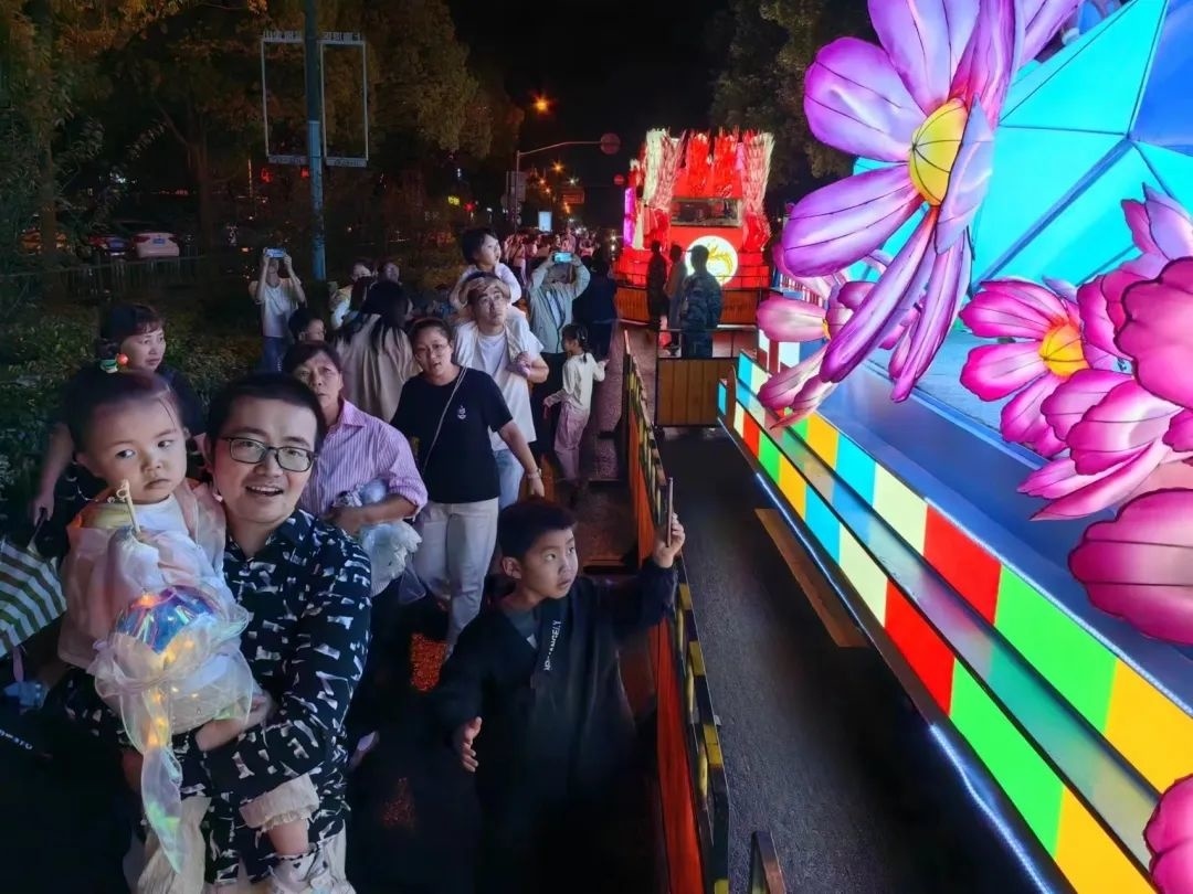 我以前只在看电视上看到过演员在花车上跳舞,今天近距离看到了花车,非常好看。