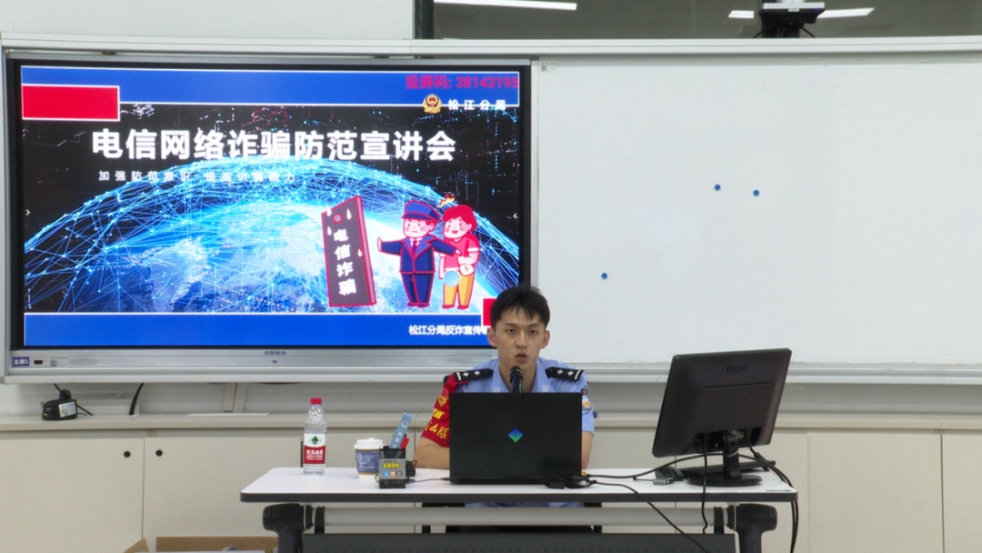“同学们,平时一定不要随意点击陌生人提供的网址链接,切勿随意填写银行卡密码、短信验证码等信息。”活动现场,来自松江公安分局反诈专班的吴悠悠警官以通俗易懂的语言,结合真实生动的案例,呼吁在场的青年学子在生活中要把好个人信息保护的第一道关口,从源头遏制电信网络诈骗。
