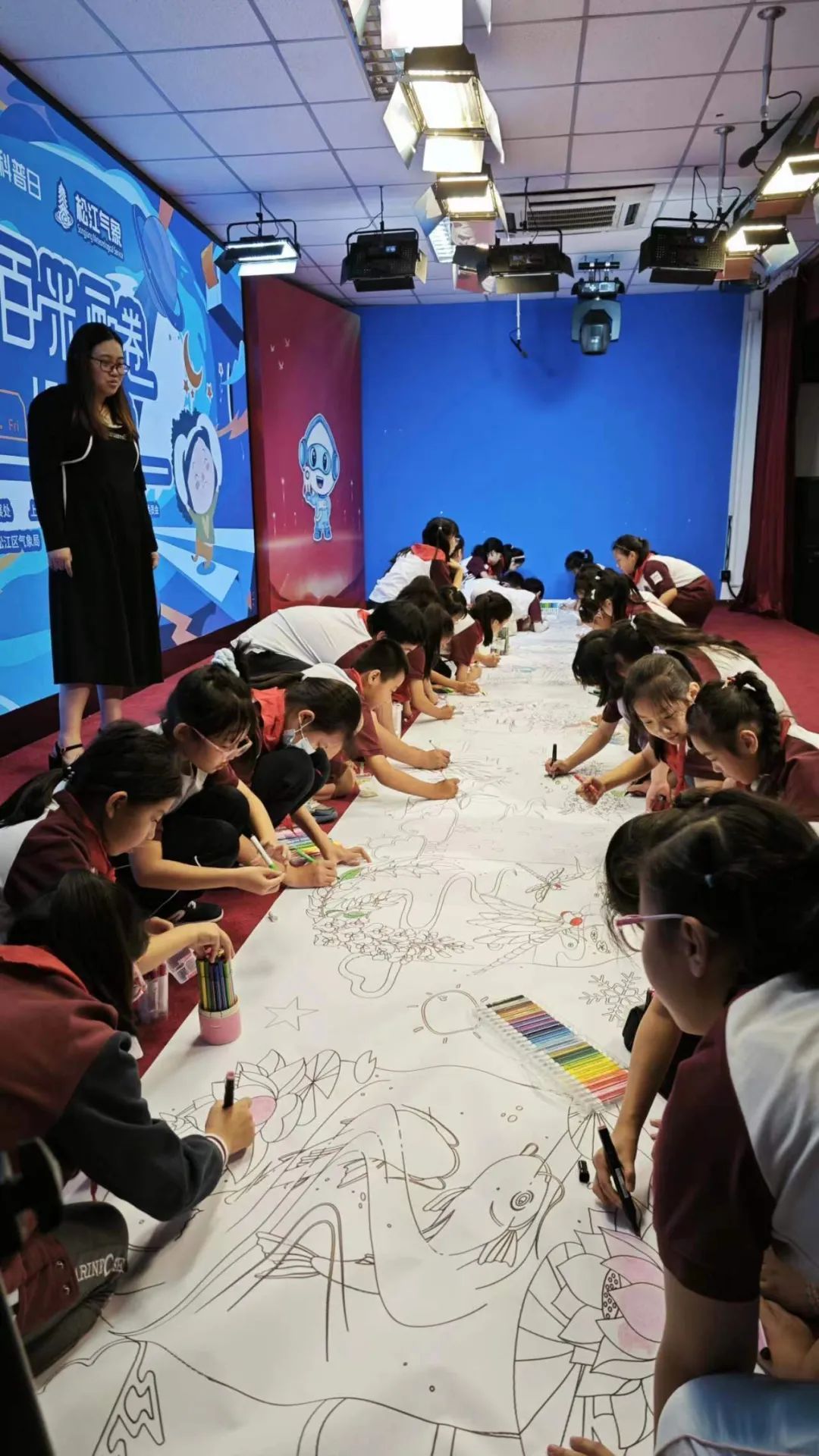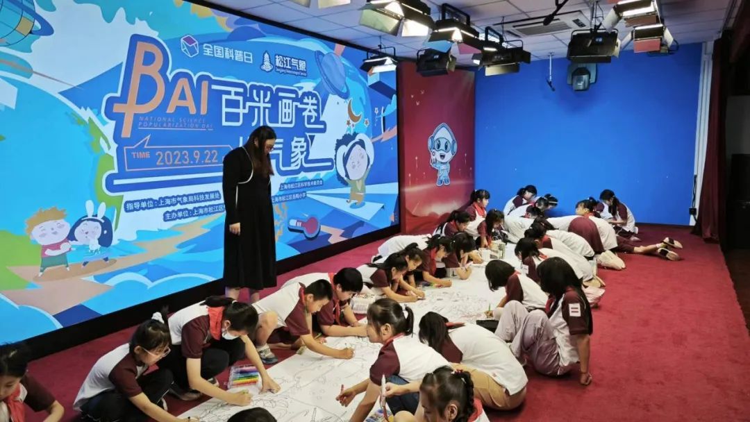9月22日,松江区气象局与岳阳小学共同举办“百米画卷绘气象”活动。在岳阳小学阶梯教室内,近百名学生聚集在一起,用稚嫩的画笔在百米画卷上描绘他们心中的“万千气象”。