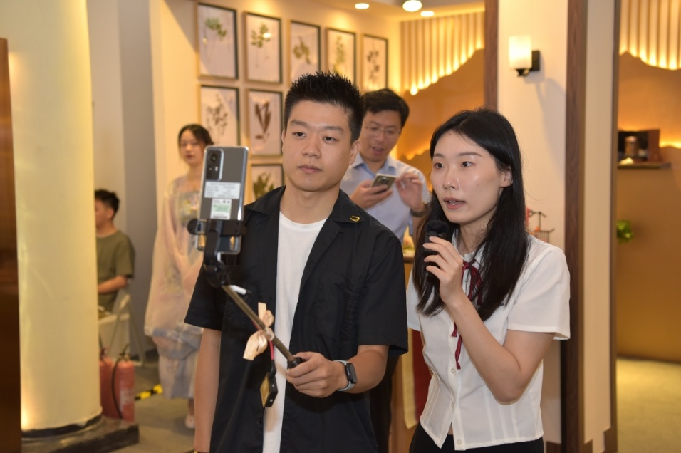 在展区另一边的本草空间里,一位“00后”员工正拿着手机在“允上生活丨雷允上西区”抖音号上进行直播,带领网友识本草、聊养生。Q萌可爱的科普IP“雷小西”人偶也不时在现场闪现,给市民带来惊喜小礼物。
