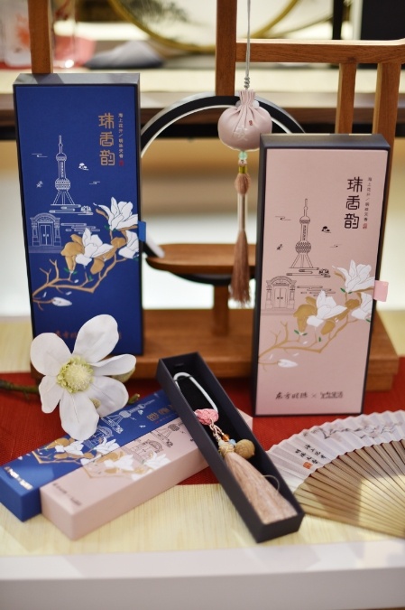 今年,“允上生活”还与多个品牌推出联名款新品。由一枚合香珠和一把草本扇组成的“允上生活”与东方明珠联名款“珠香韵礼盒”就吸睛无数。