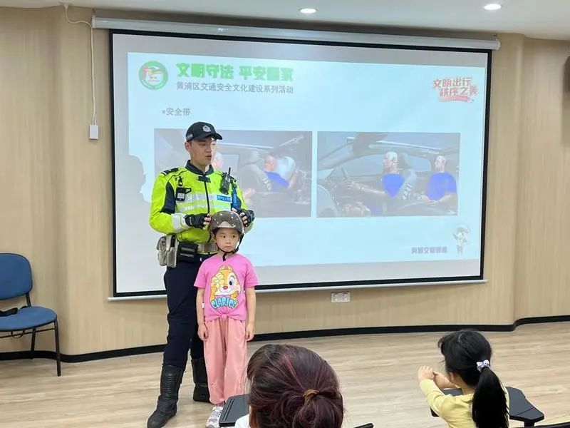 “今天小朋友们学会了正确佩戴安全带与头盔,希望大家回家后不仅要自己做好,也给自己的爸爸妈妈、爷爷奶奶宣传好,一定要遵守道路交通法律法规。”为了进一步做好社区儿童交通安全宣传教育,提升儿童与家长的交通安全意识和自我保护能力,有效预防和减少道路交通安全事故发生,9月22日下午,五里桥街道儿童服务中心邀请黄浦区交警支队的藤警官与戚警官为社区儿童带来了一堂生动有趣的交通安全活动课。