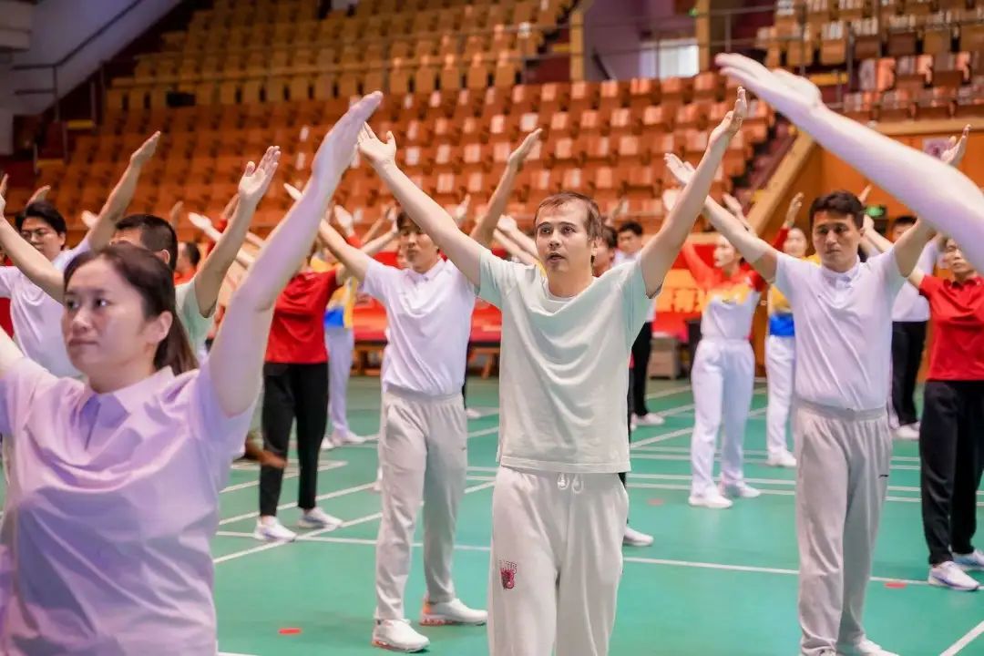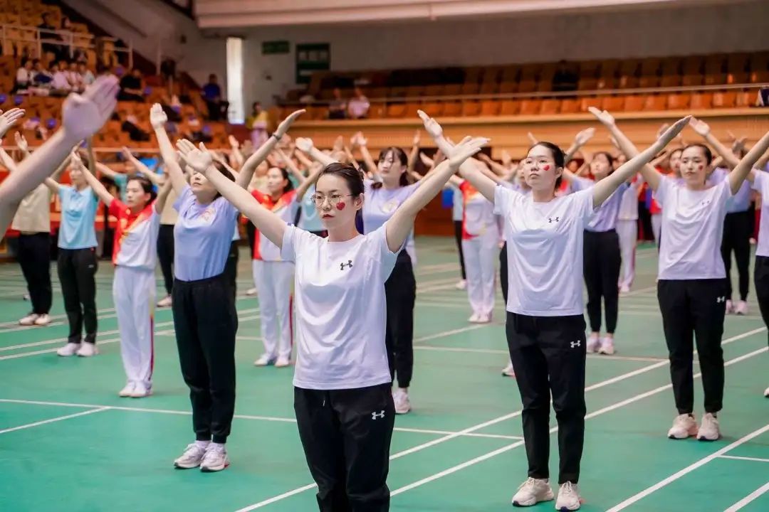 9月23日,2023年“兴业银行杯”上海城市业余联赛990上海市第九套广播体操联赛“韵动杨浦·秀出来”第九套广播体操比赛在杨浦体育馆举行。来自全区各行各业的25支优秀代表队300余人参赛。