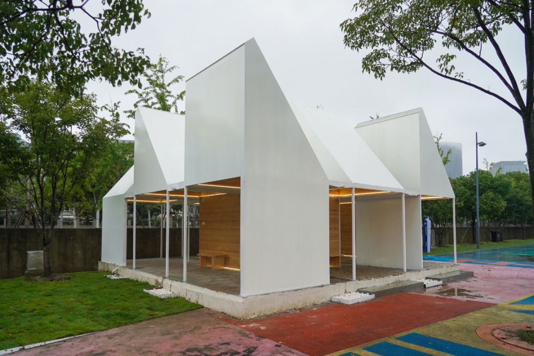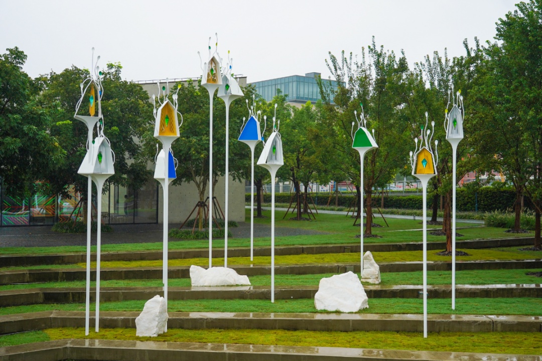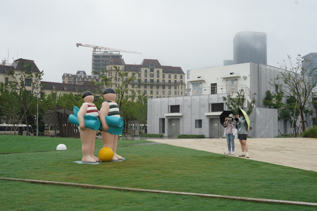 在水岸沿线室外空间,可以看到散布着互动艺术装置、生态场景营造、六艺亭驿站等参展作品,整合了建筑、景观、公共艺术、雕塑、装置、城市家具等多个艺术领域。在这里,观众不仅可以跟随策展人的脚步,自由探索,还可以近距离聆听艺术家们的创作理念,了解作品背后的故事。