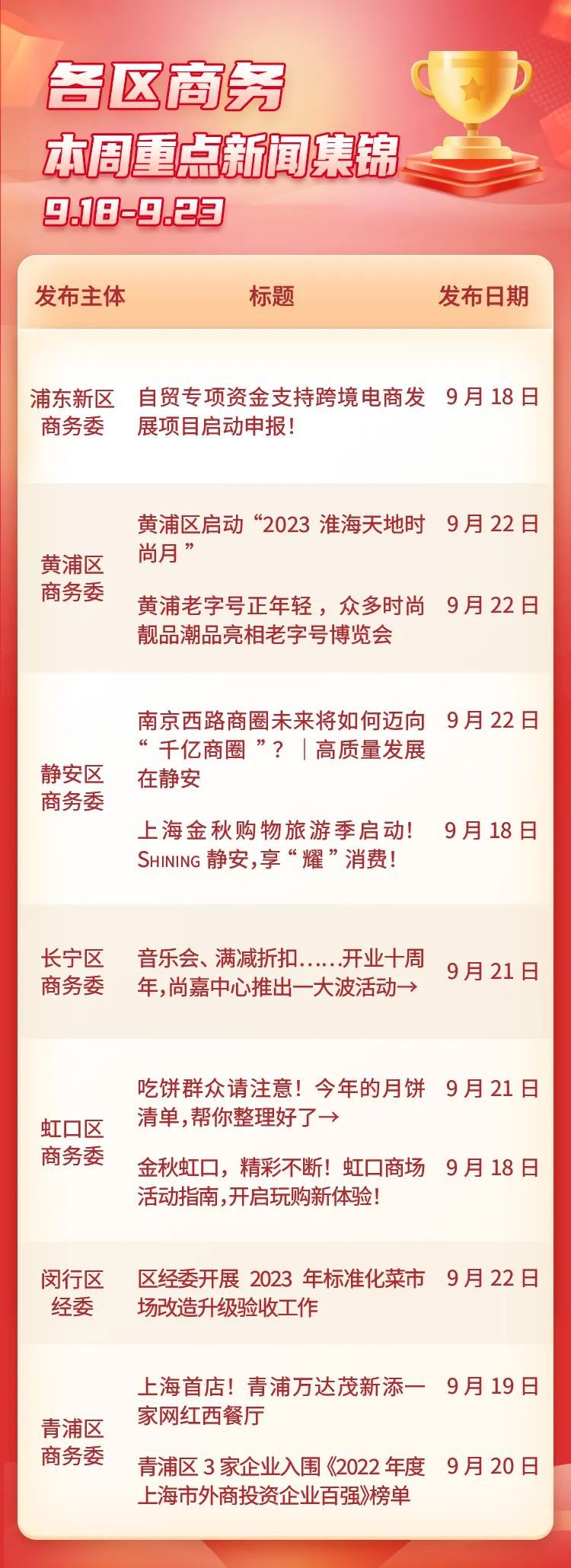 (仅选取部分各区商务主管部门官方微信公众号发布或向“上海商务”报送的新闻,排名不分先后~)