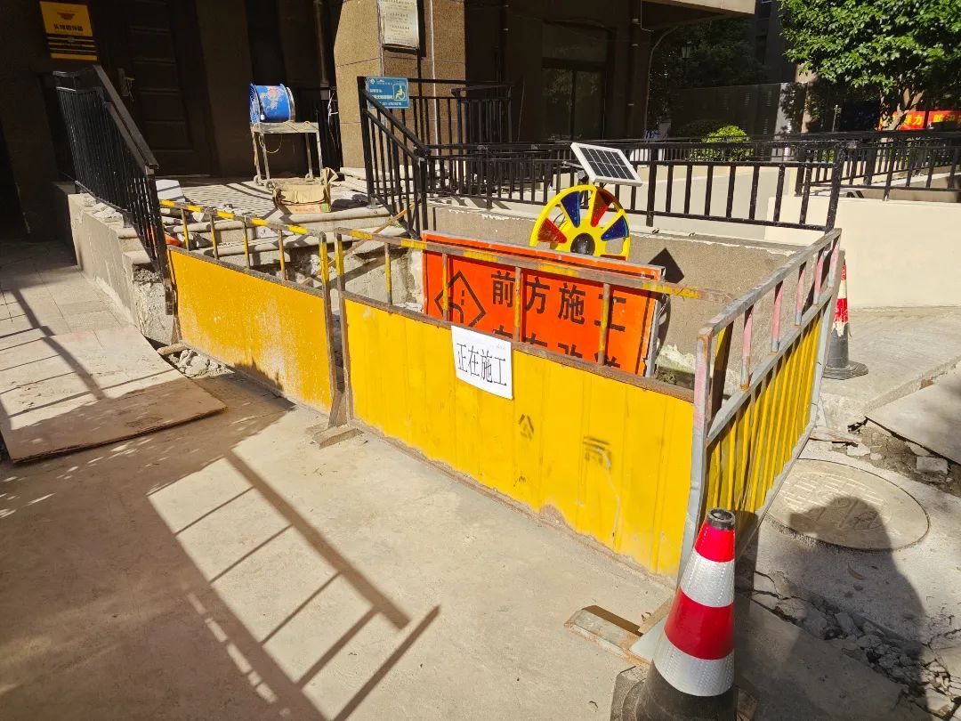 施工初期,原本采用机械作业施工,但施工人员挖开地面后发现,地下埋有的电力线缆、通信线、水管等管线错综复杂,如果继续作业可能会破坏管线。居委会与施工方查看现场并商讨应对方案,最后决定采用人工作业。虽然费时费力,但人工开挖既能主动避开地下管线,又能避免机械噪声影响居民生活。