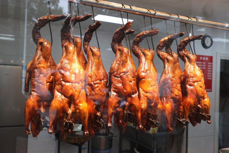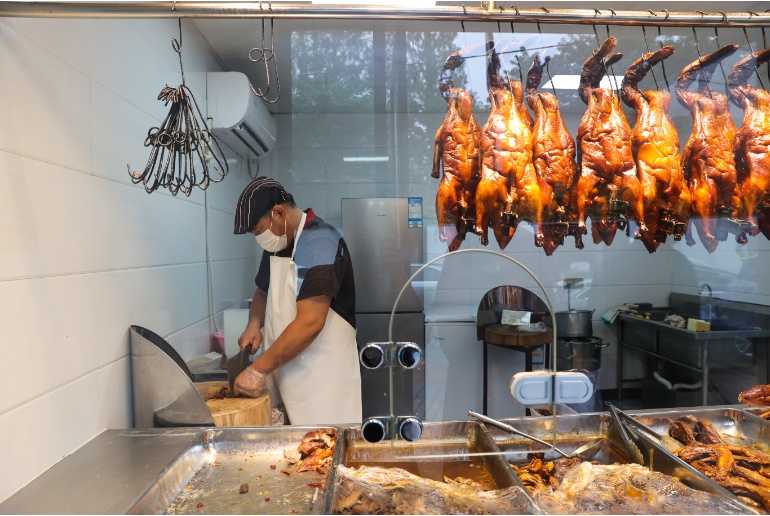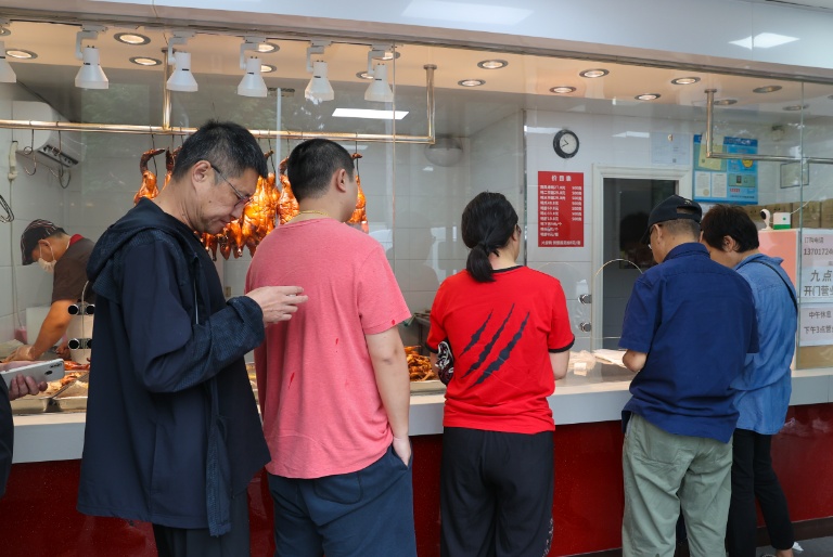 与毛豆、芋艿相比,鸭子的销售情况就更加火热了。上午10点,位于龙恒路上的南风烤鸭店刚刚开始营业,人们就排起了长队等待购买这道美味的佳肴。据店主介绍,今年中秋期间,他们预计售出的烤鸭数量将超过去年的两倍,预订烤鸭的电话更是络绎不绝。