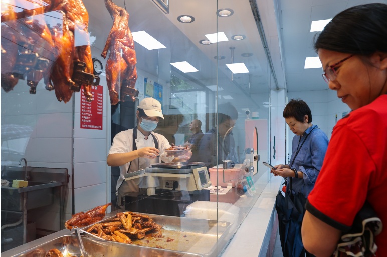 谈及毛豆、芋艿、鸭子这几种传统中秋节食品时,前来购买烤鸭的陈女士表示,毛豆、芋艿、鸭子是上海人中秋节必吃的食物,芋艿口感糯滑香甜,代表着团圆与和谐;鸭子则象征着团聚和幸福。这些传统食品不仅给大家带来了美味享受,更是寄托了人们对于家庭和美好生活的祈愿。