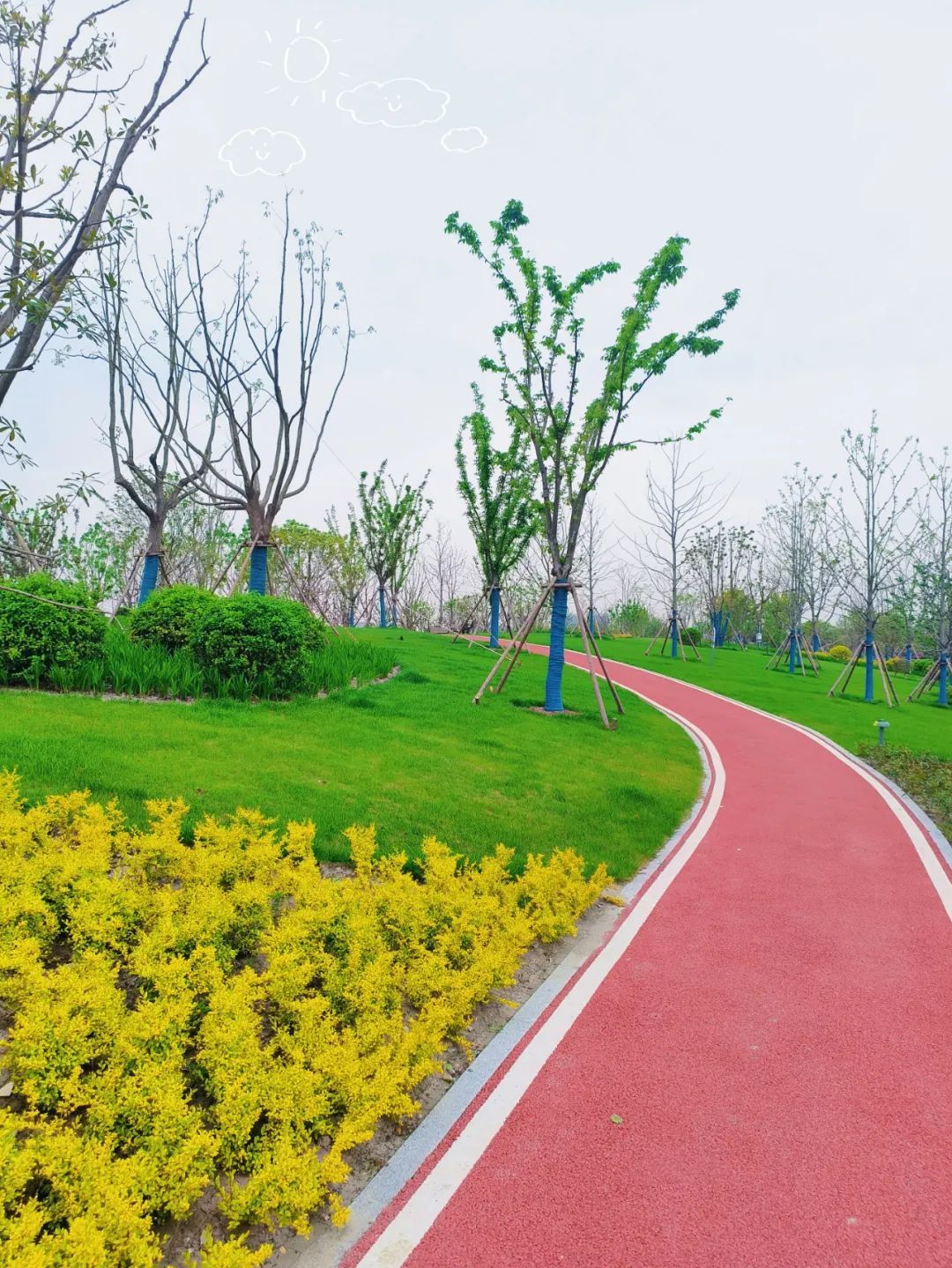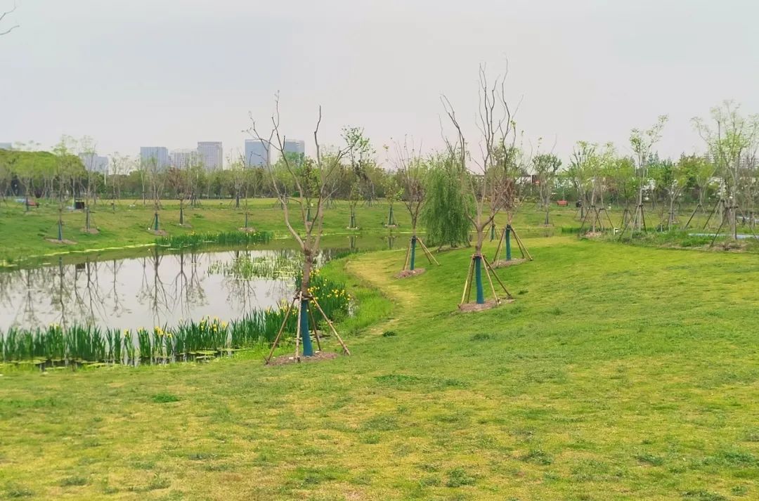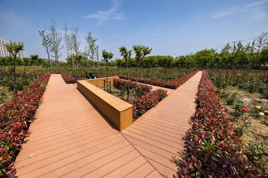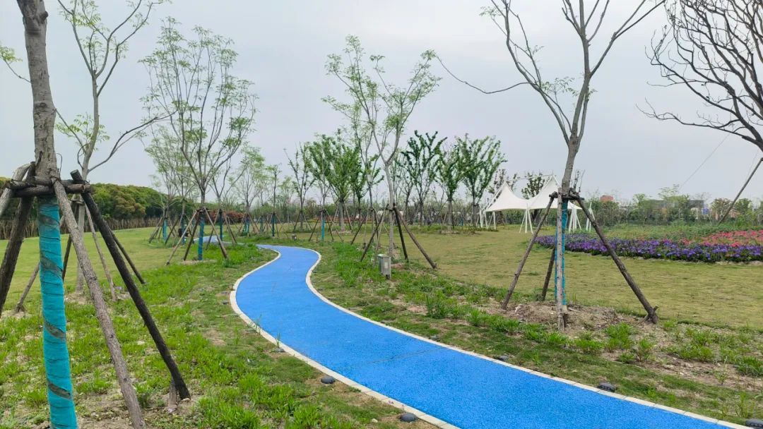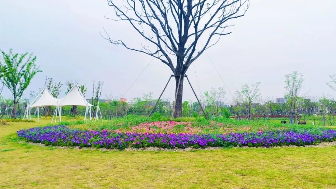 绿地、鲜花、河水、步道