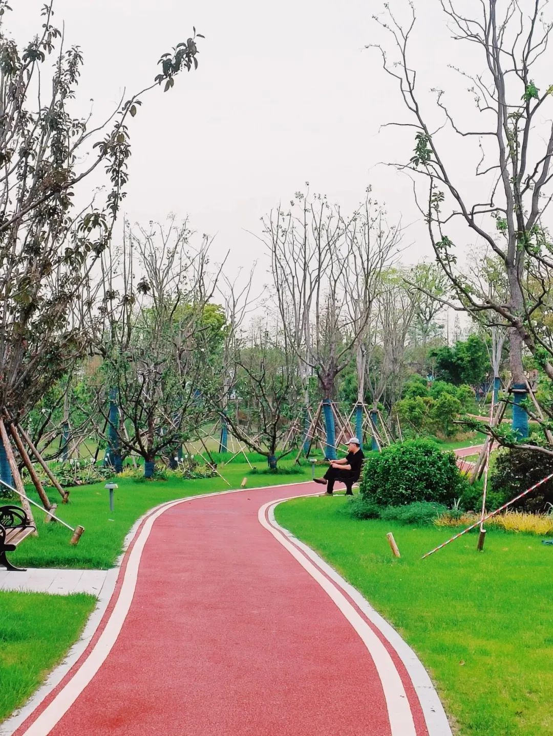 沿着红色木栈道漫步