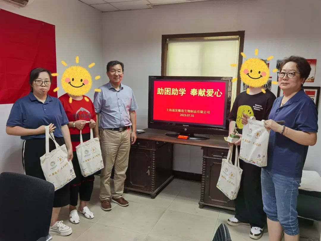 上海迪发酿造生物制品有限公司、复星联合健康保险股份有限公司上海分公司、上海今明环境发展集团有限公司、民建虹口经济七支部、中外运——敦豪国际航空快件有限公司上海分公司分别向困难学生分享了公司的基本情况,带领他们参观了公司的职场和工作流程,传递正能量的企业文化,并向同学们发放了助学金和学习用品套餐,鼓励学生奋发图强、立志成才。